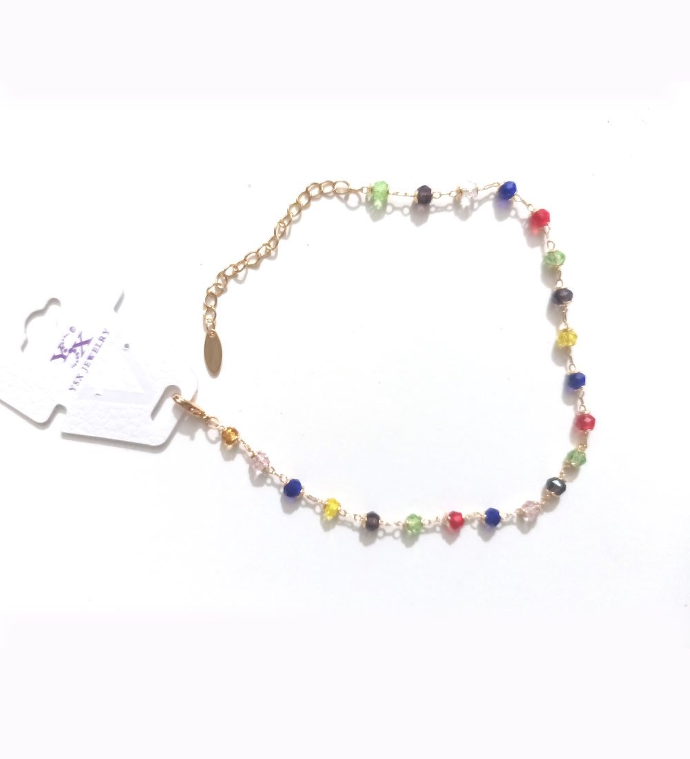 Brand New Delicate Multicolor Crystal Beaded Anklet – Gold Tone Chain – pid 130