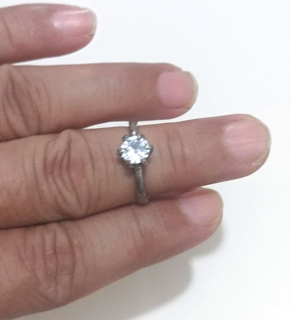 Brand New Diamond Cut AD Stone Silver Solitaire Finger Ring with Rose Gift Box for Women