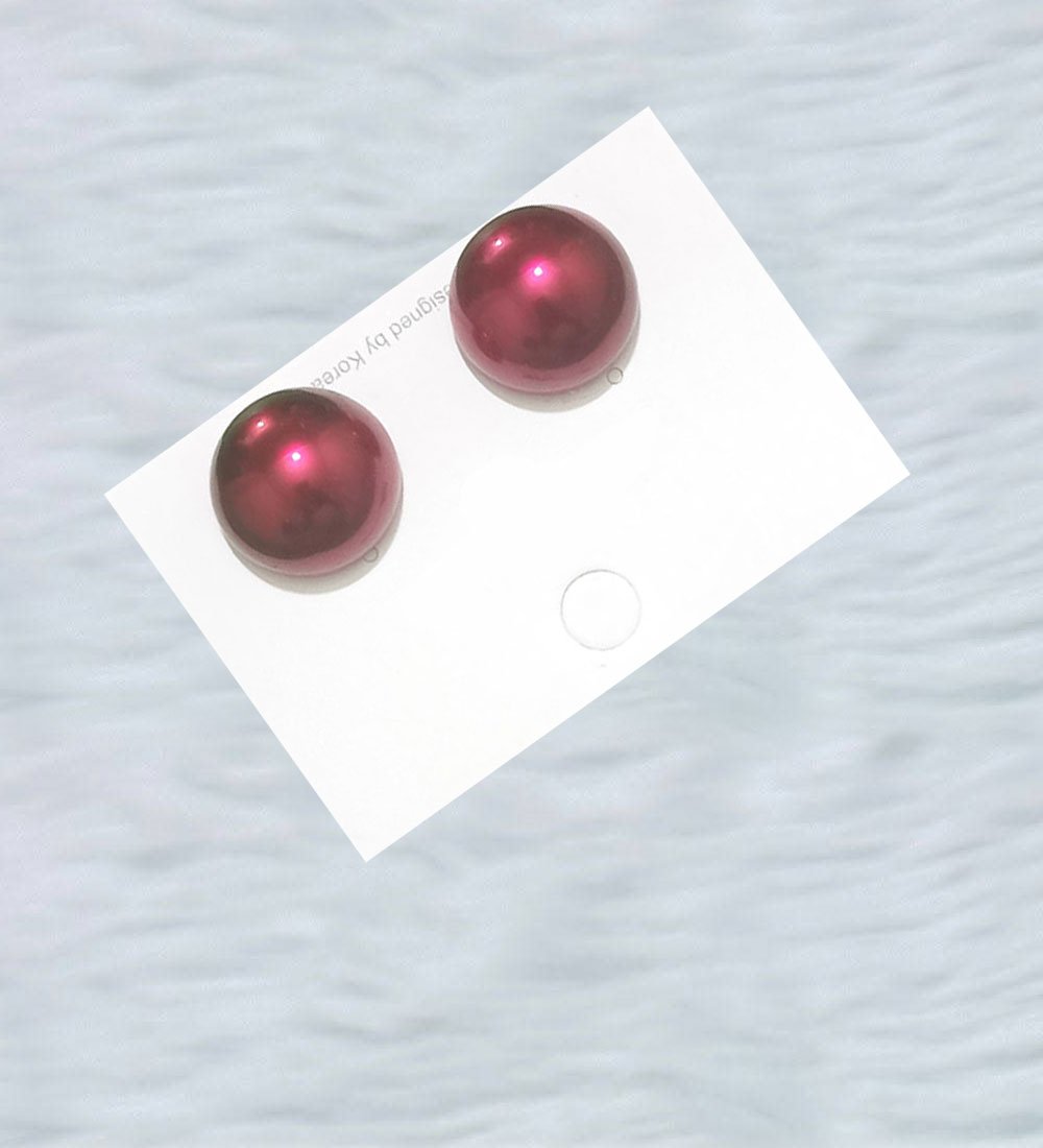 Brand New Glossy Maroon Stud Earrings – Round Korea-Inspired Design