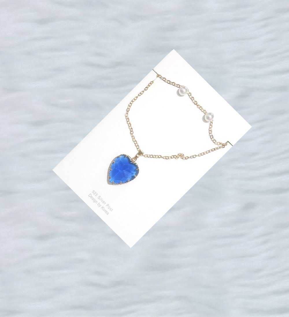 Brand New Gold Heart Necklace – Blue Gemstone Pendant with Pearl Accents