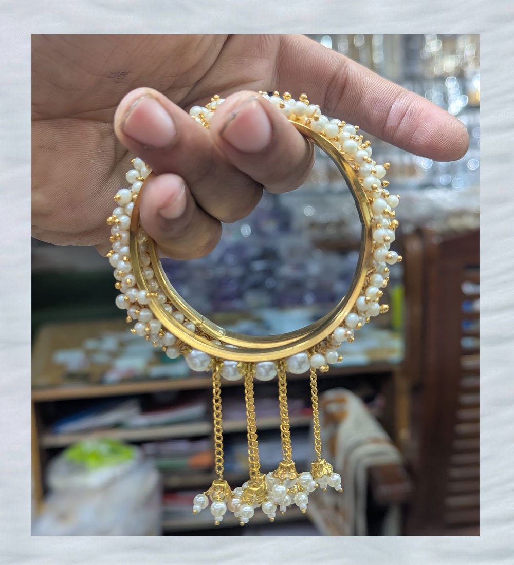 Brand New Gold Polish Pearl Bangle with Hanging Tassels