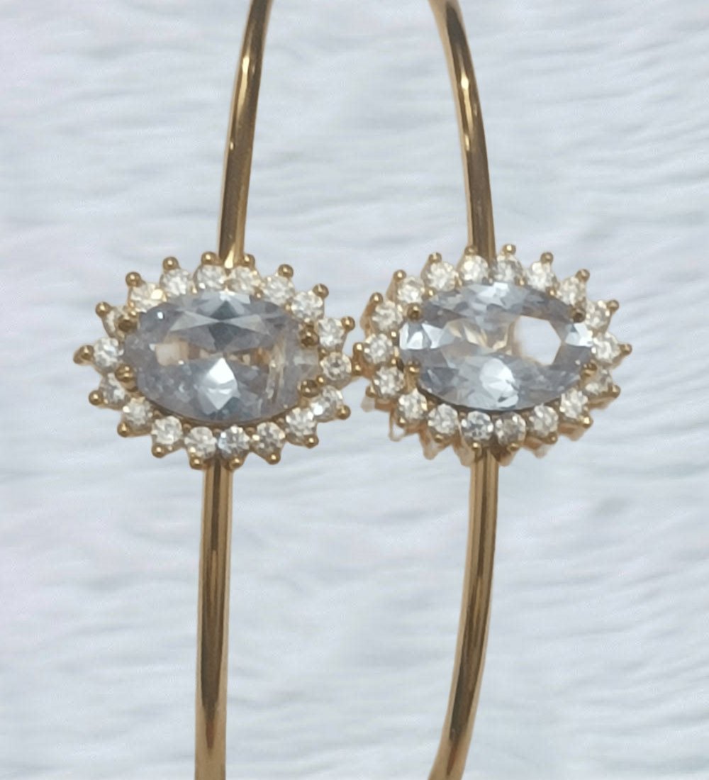 Brand New Oval-Cut Stone Gold Bangles – Halo-Set Clear Gems