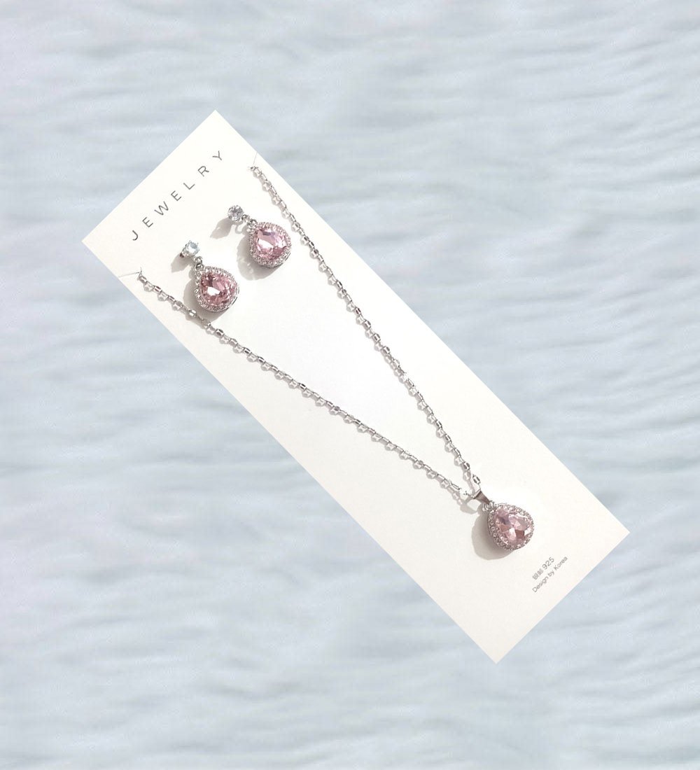 Brand New Pink Teardrop Jewelry Set – Gemstone Pendant Necklace with Matching Stud Earrings