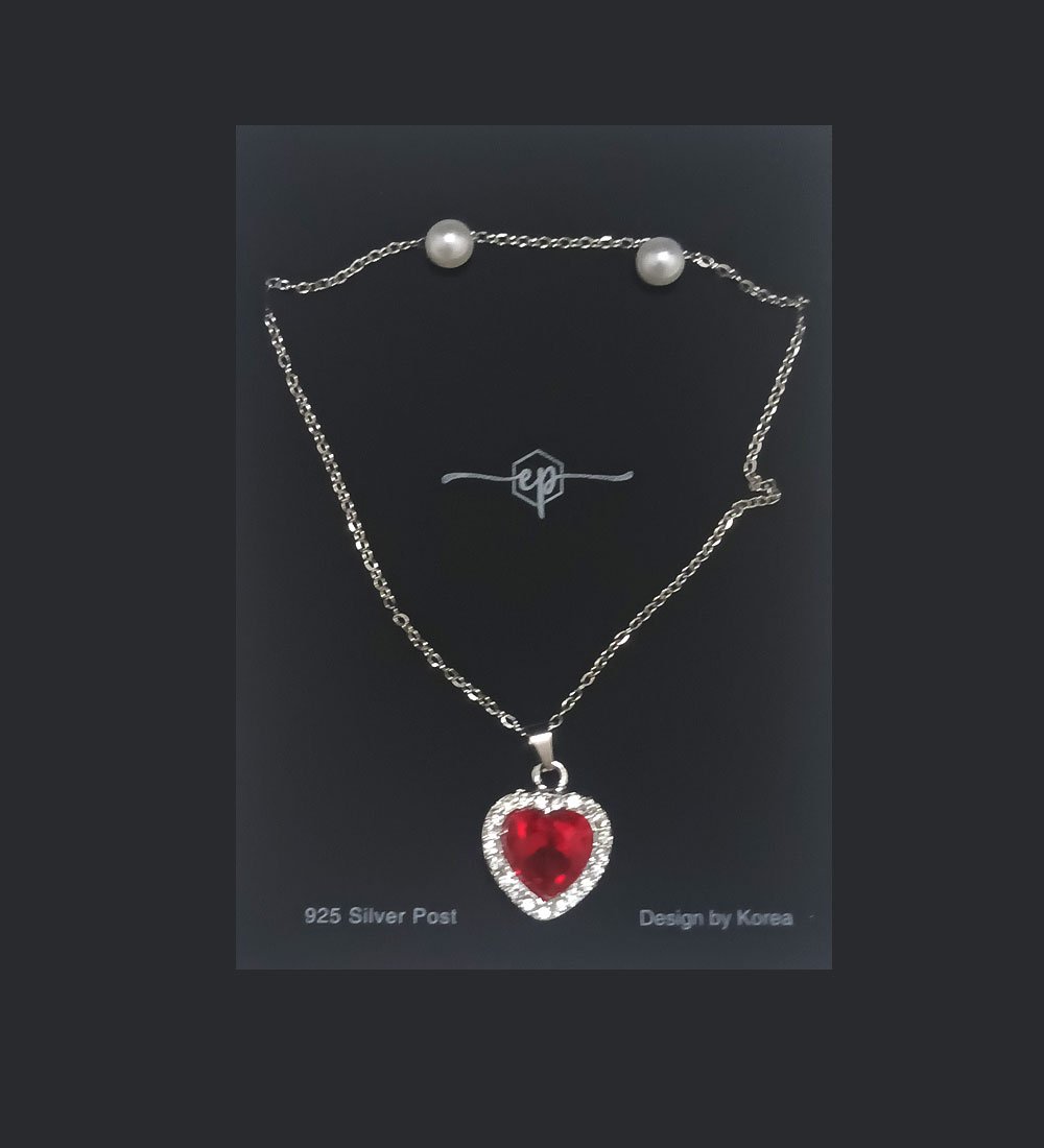 Add a pop of vibrant color and sparkle to your look with this stunning set. It features a brilliant Red Crystal Pendant with a silver chain accent, perfectly paired with classic Pearl Stud Earrings. Designed in Korea with a 925 Silver Post, this set is a must-have for instant glamour.
