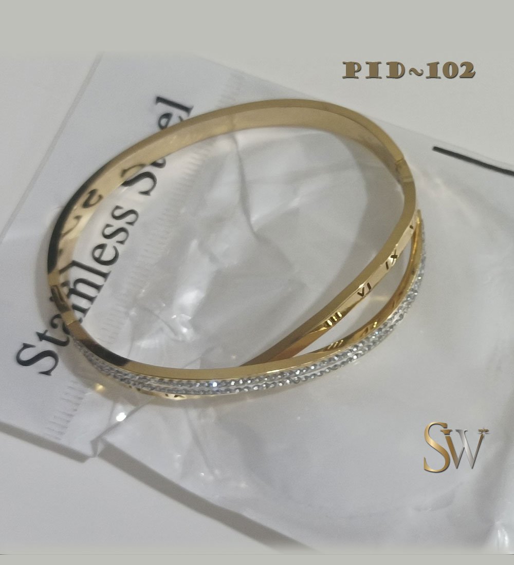 Brand New Sparkling Roman Numeral Gold Bangle | Women’s Embellished Bracelet PID-102