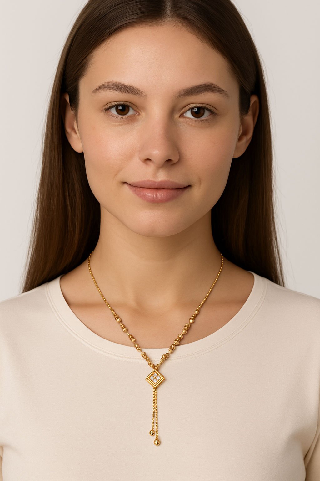 Brand New Traditional Gold Pendant Necklace – Square Geometric Center with Ornate Beadwork
