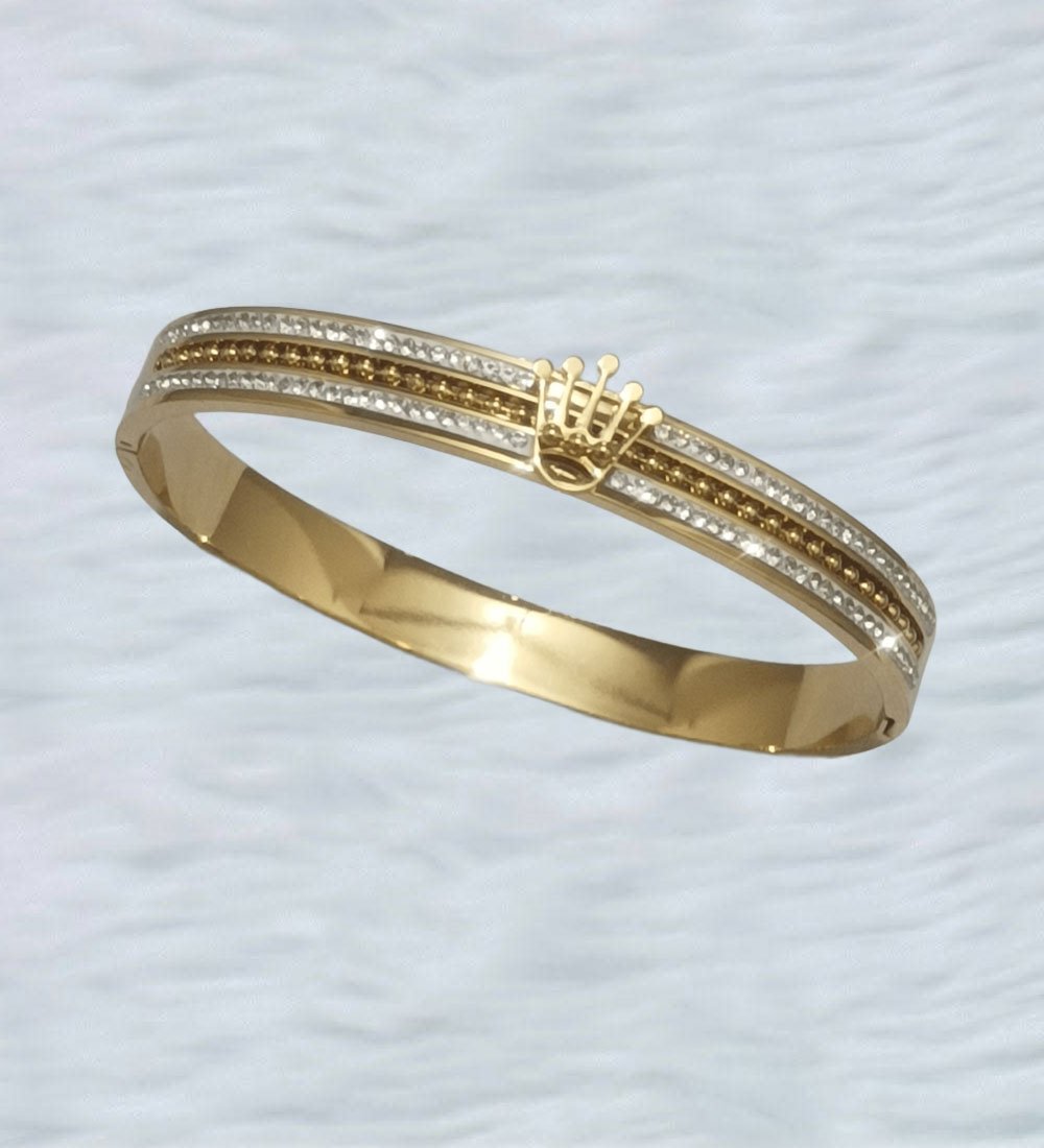 Embellished Gold-Toned CZ Bangle with Crown Lock Design